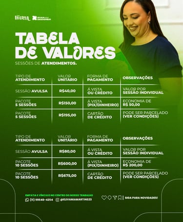 Tabela de valores, datas comemorativas e feriados, carrosseis informativos, geração de valor nas redes e muito mais.